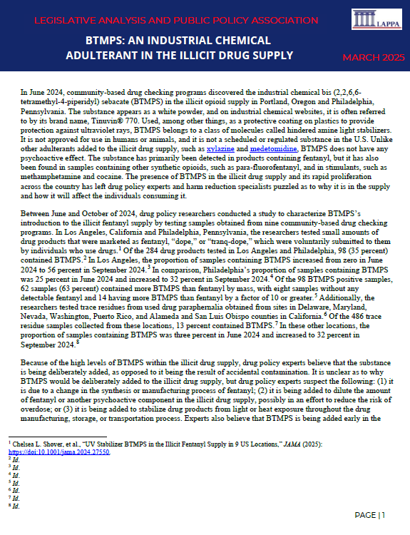 BTMPS: An Industrial Chemical Adulterant in the Illicit Drug Supply – a FACT SHEET by the Legislative Analysis and Public Policy Association