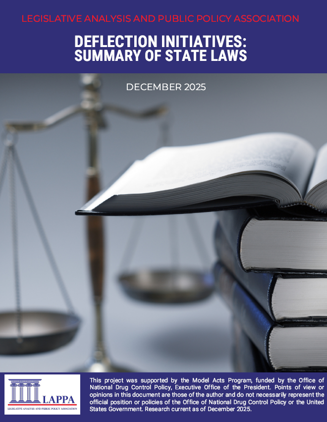 All across the U.S. jails are filled with people who need medical care and social services, many of whom cycle in and out of jail without ever receiving the help they need. One emerging model to combat this problem is deflection, which seeks to prevent individuals who have low to moderate criminogenic risk, but significant unmet social, economic, and health needs, from entering the criminal justice system. The goal of deflection programs is to lessen the burden on the criminal justice system by connecting those individuals—before they enter the criminal justice system—to treatment and social services to which they might not otherwise have access. This document is designed to: (1) provide a singular resource for each jurisdiction’s deflection laws; (2) allow for a comparison of these laws between jurisdictions; and (3) identify and highlight interesting provisions.